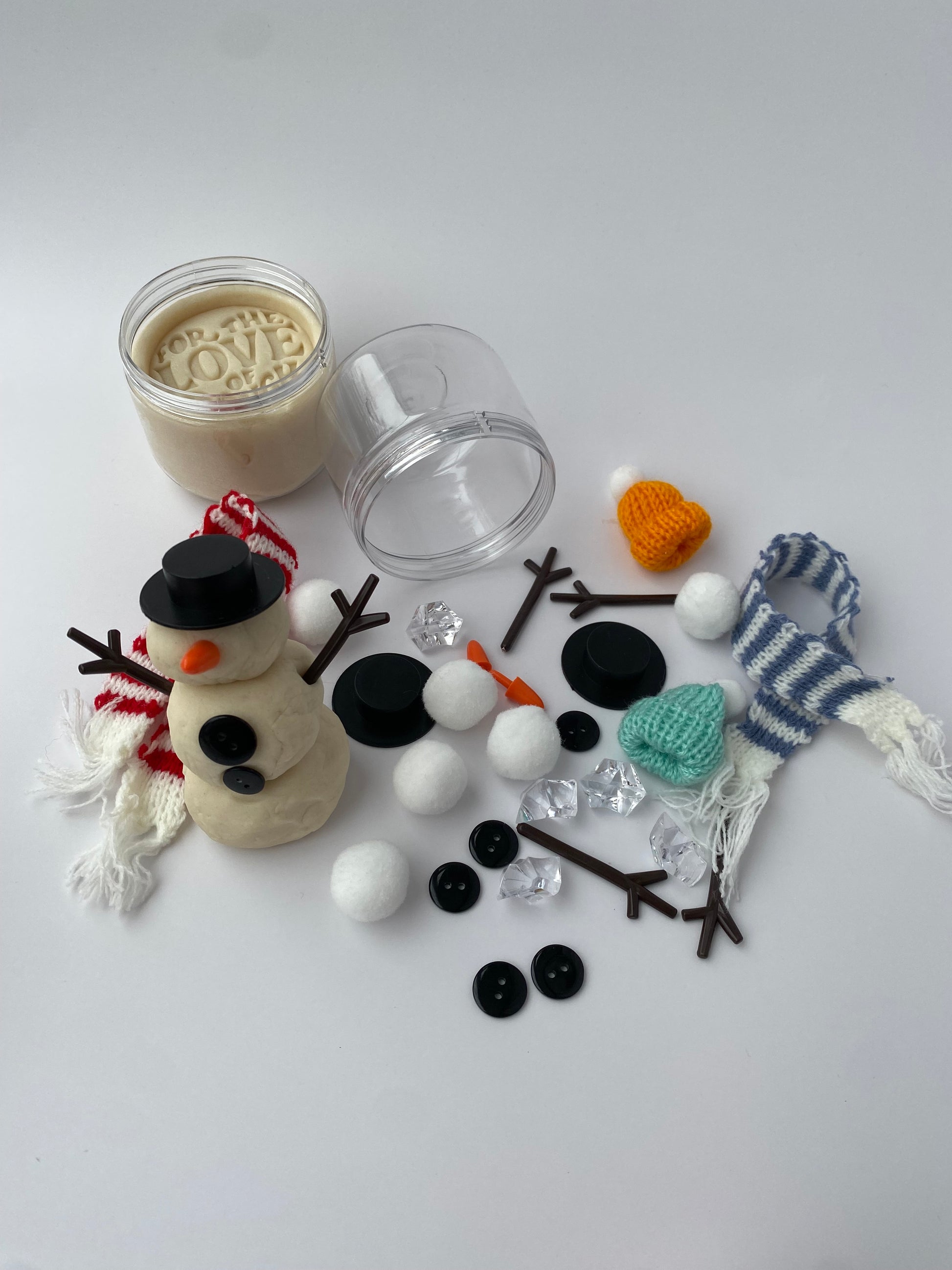 Skip the snow and bring winter fun indoors with this delightful dough-building kit. Roll, shape, and decorate your own snowman using sparkly white, homemade dough and a bundle of charming accessories—no cold weather required. Whether you're stuck inside on a chilly day or need entertainment for a winter road trip, this portable jar keeps the magic of snowman-building alive, screen-free and endlessly fun.
