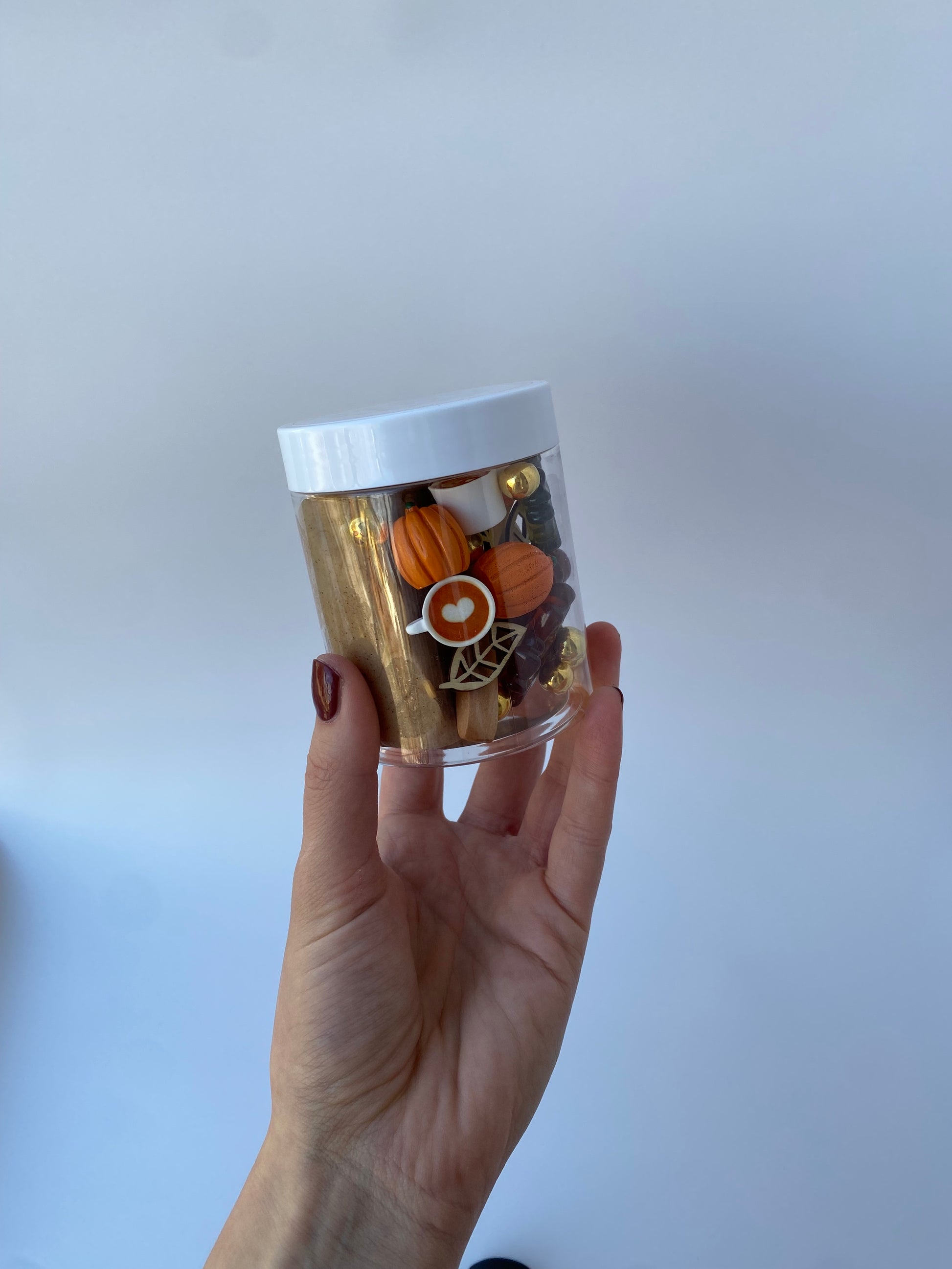 Think of this fun little jar as your chance to go grab your own latte and actually enjoy it while the kids are playing. Packed with seasonal goodies, naturally colored, and scented with real pumpkin spice. It is a true pumpkin spice experience.